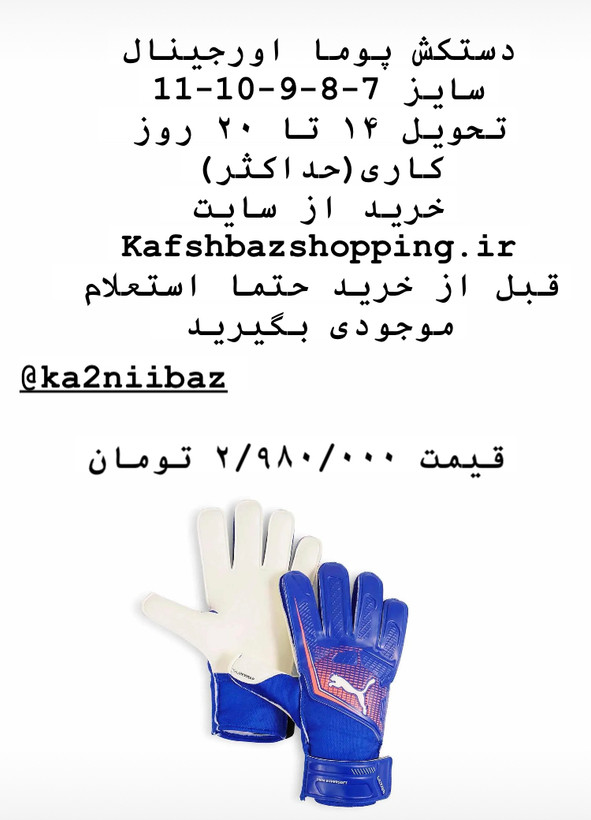 دستکش دروازه بانی پوما اورجینال سایز 7-8-9-10-11